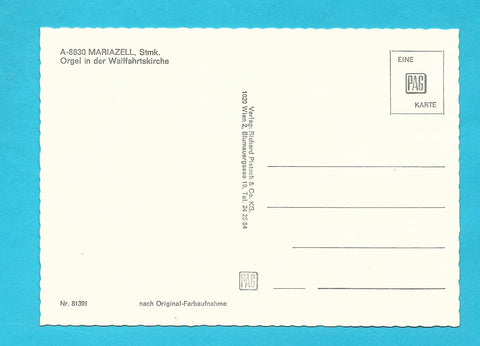 AK Mariazell. Orgel in der Wallfahrtskirche. Ungelaufen. Großformat. Verlag: Pietsch. Nummeriert: 81391. Zustand: gut.