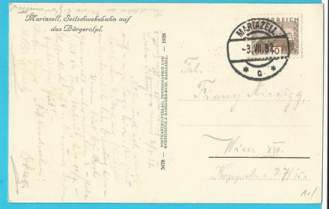 AK Mariazell, Seilschwebebahn auf das Bürgeralpl. (1928) Gelaufen. Kleinformat. Verlag: Radinger. Nummeriert: 3078. Zustand: gut.