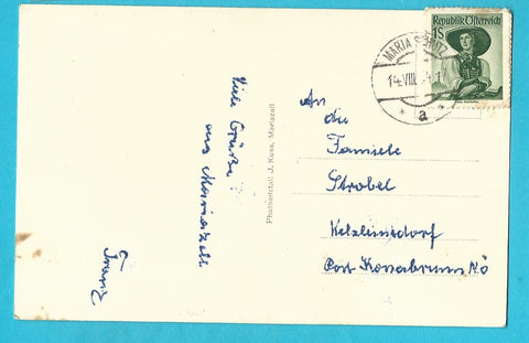 AK Mariazell und Bürgeralpe. Gelaufen. Kleinformat. Verlag: Kuss. Nummeriert: M 215. Zustand: leicht bestoßen.