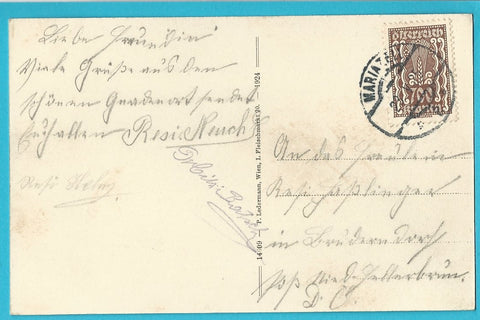AK Mariazell. Wallfahrtskirche. Marienfall. (1924) Gelaufen. Kleinformat. Verlag: Ledermann. Nummeriert: 14609. Zustand: gut.