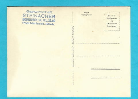 AK Mosshuben bei Mariazell. Gastwirtschaft Steinacher. Ungelaufen. Großformat. Verlag: Kuss. Nummeriert: V 16 W. Zustand: gut, rechtes oberes Eck angeknickt.
