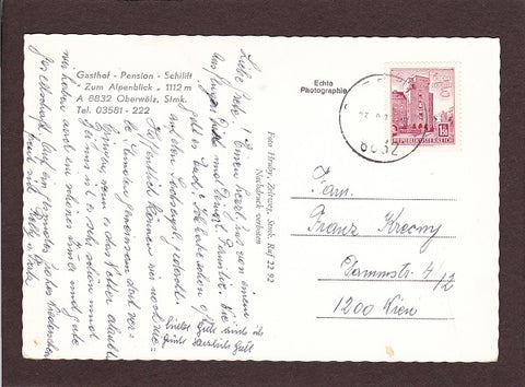 AK Oberwölz. Gasthof Pension Zum Alpenblick. Gelaufen. Großformat. Verlag: Hruby. Nummeriert: 6678. Zustand: Knick am oberen Rand in der rechten Hälfte, sonst O.k.