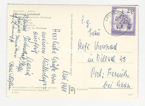 AK Rebenland Leutschach. Gelaufen. Großformat. Verlag: Brothanek. Nummeriert: B 292c. Zustand: gut, rechtes unteres Eck wenig angeknickt.