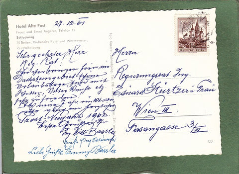 AK Schladming. Hotel Alte Post. Franz und Emmi Angerer. Gelaufen 1961. Großformat. Verlag:Kaserer. Zustand: gut.