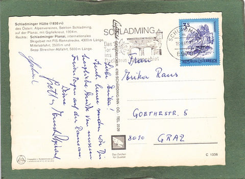 AK Schladminger Planai. Schladminger Hütte. Gelaufen 1983. Großformat. Verlag: Scheurecker. Nummeriert: C 1336. Zustand: linkes oberes Eck geknickt.