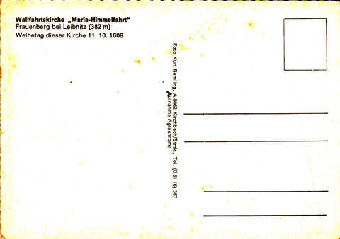AK Wallfahrtskirche Maria-Himmelfahrt. Frauenberg bei Leibnitz. Ungelaufen. Großformat. Verlag: Remling. Zustand: gut, leichte Randläsuren.