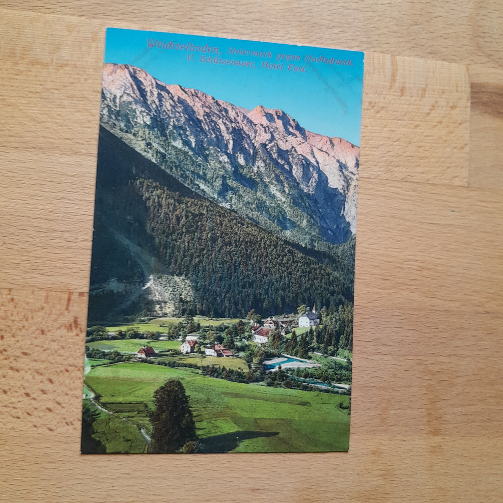 AK Weichselboden gegen Hochschwab. V. Schützenauer, Hotel Post. (1913/14)