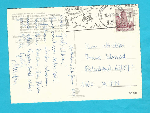AK Wintersportgebiet Mariazell - Gemeindealpe - Mitterbach. Gelaufen. Großformat. Verlag: Alpine Luftbild. Nummeriert: FÖ 345. Zustand: gut, Ecken leicht angestoßen.