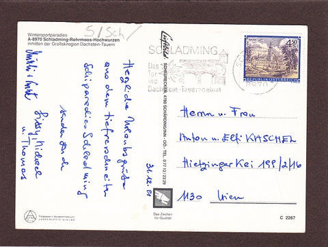 AK Wintersportparadies Schladming-Rohrmoos-Hochwurzen. Gelaufen. Großformat. Verlag: Scheurecker. Nummeriert: C 2267. Zustand: leichte Randläsuren.