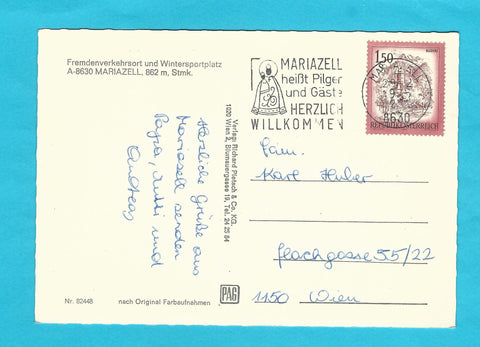 AK Wintersportplatz Mariazell. Gelaufen. Großformat. Verlag: Pietsch. Nummeriert: 82448. Zustand: gut.