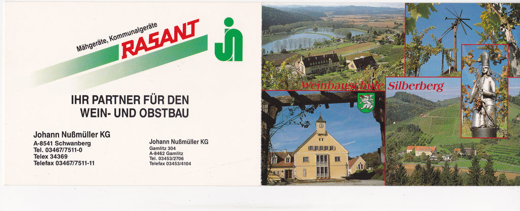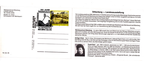Doppel-AK Weinbauschule Silberberg. Leibnitz. Modell: Hl. Urban Schutzpatron der Weinbauern (von Ewald Stani) Mit Sonderstempel 100 Jahre Weinbauschule Silberberg. Großformat. Verlag: Krainer. Col. 26. Zustand: gut.