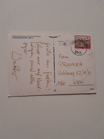 AK Gruss aus Badgastein. Gelaufen. Großformat. Verlag: Alpine Luftbild. Nummeriert: 76550. Zustand: linkes unteres und rechtes oberes Eck geknickt.