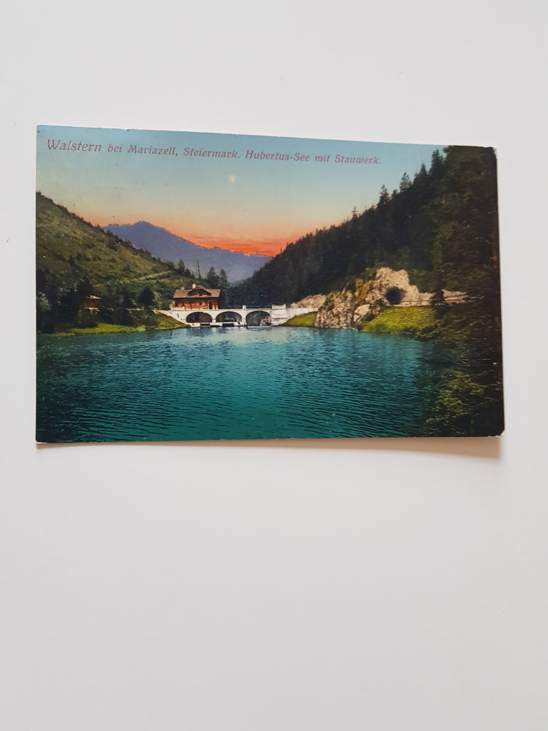 AK Walstern bei Mariazell. Hubertus-See mit Stauwerk. (1916) Gelaufen. Kleinformat. Verlag: Ledermann. Nummeriert: 19113. Zustand: gut.