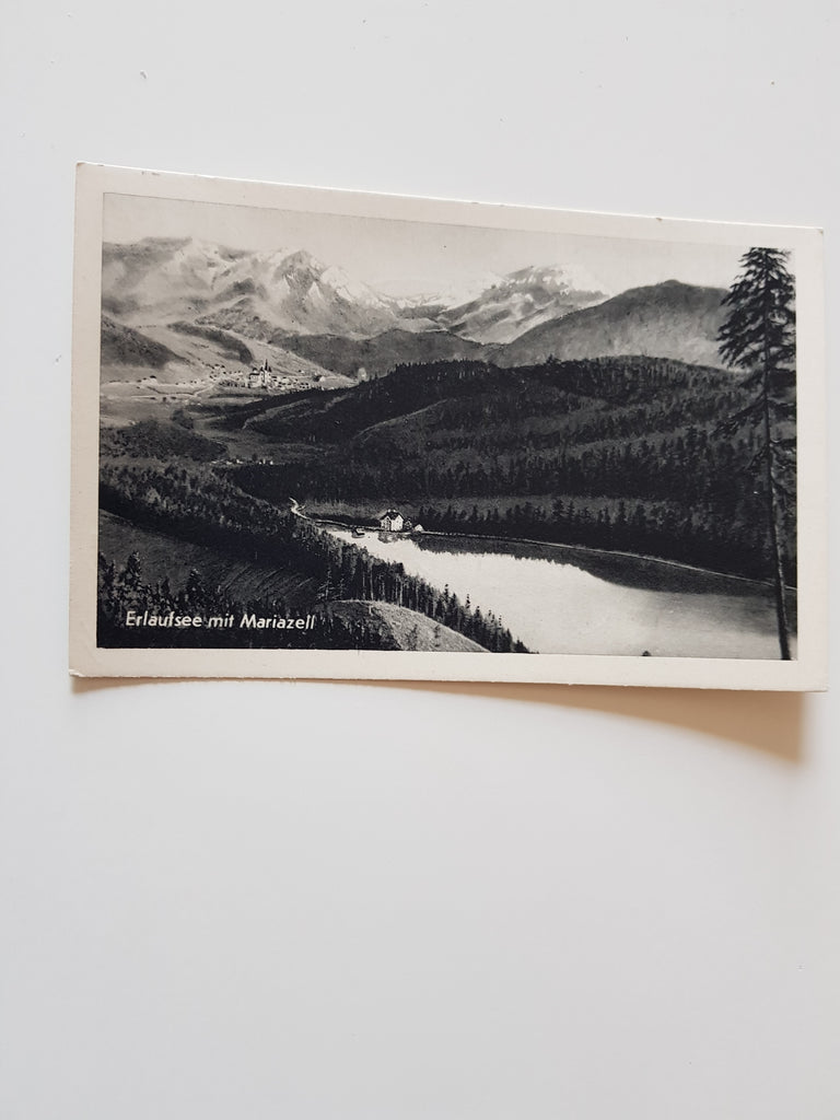 AK Erlaufsee mit Mariazell. (1949) Gelaufen. Kleinformat. Verlag: Radinger. Nummeriert: 3110. Zustand: gut.