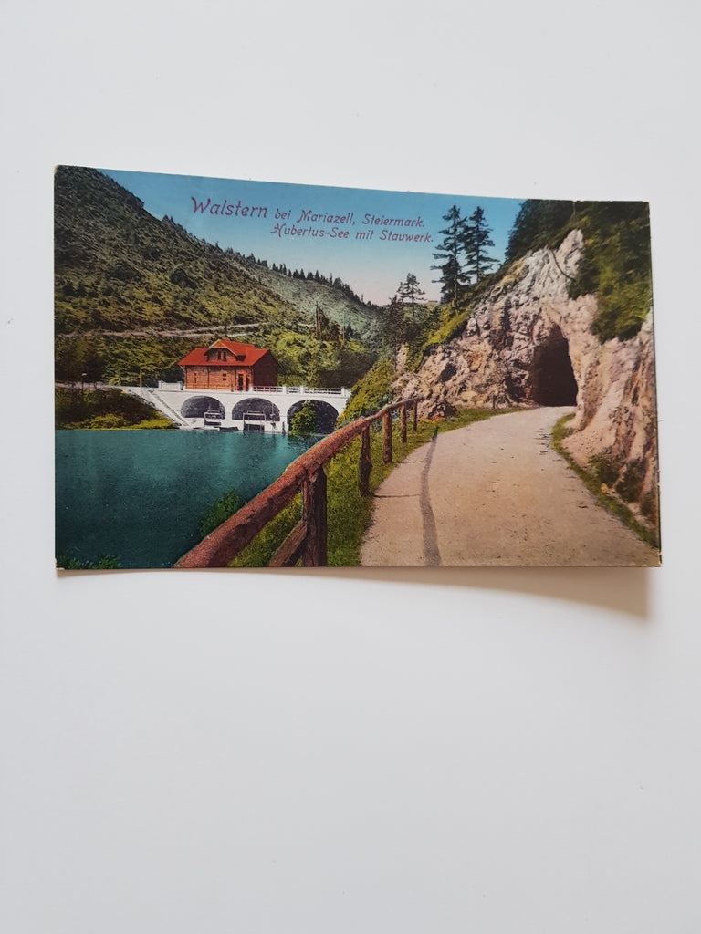 AK Walstern bei Mariazell. Hubertus-See mit Stauwerk. (1926) Gelaufen. Kleinformat. Verlag: Ledermann. Nummeriert: 19114. Zustand: gut.