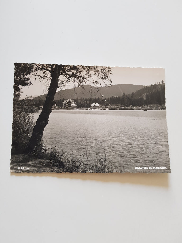 AK Erlaufsee bei Mariazell. Gelaufen. Großformat. Verlag: Kuss. Nummeriert: E 88. Zustand: linkes unteres Eck geknickt.