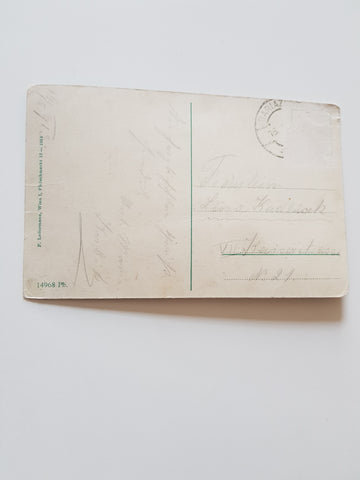 AK Mariazell. (1912) Gelaufen, aber Briefmarke wurde entfernt. Kleinformat. Verlag: Ledermann. Nummeriert: 14968. Zustand: stärker bestoßen.