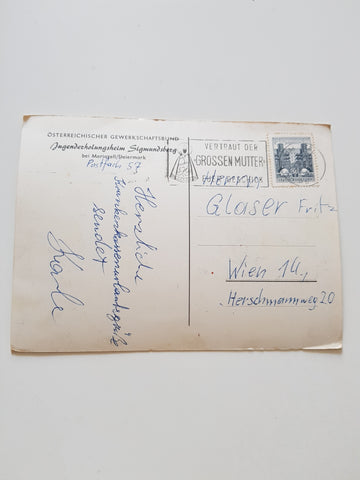 AK Österreichischer Gewerkschaftsbund Jugenderholungsheim Sigmundsberg bei Mariazell. Gelaufen. Großformat. Zustand: Ecken etwas angestoßen.