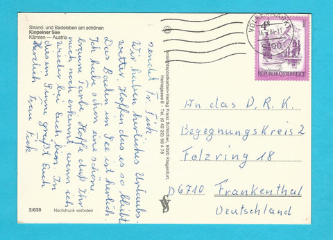 AK Feriengrüße vom Klopeiner-See. Gelaufen. Großformat. Verlag: Schilcher. Nummeriert: 2/639. Zustand: Knicke am oberen Rand.
