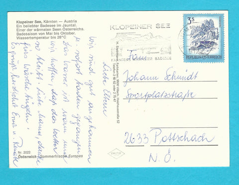 AK Klopeiner See. Gelaufen. Großformat. Verlag: Steinmann. Nummeriert: 2022. Zustand: linkes unteres Eck geknickt.
