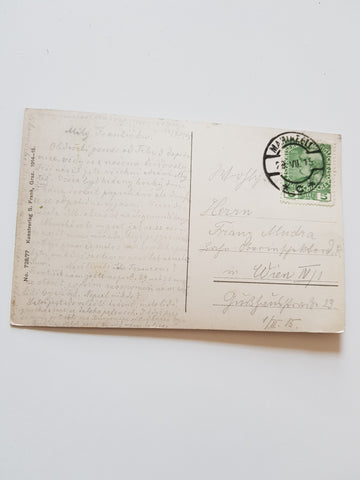 AK Mariazell. (1914-15) Gelaufen. Kleinformat. Verlag: Frank. Nummeriert: 728/77. Zustand: gut, linkes oberes Eck geknickt.