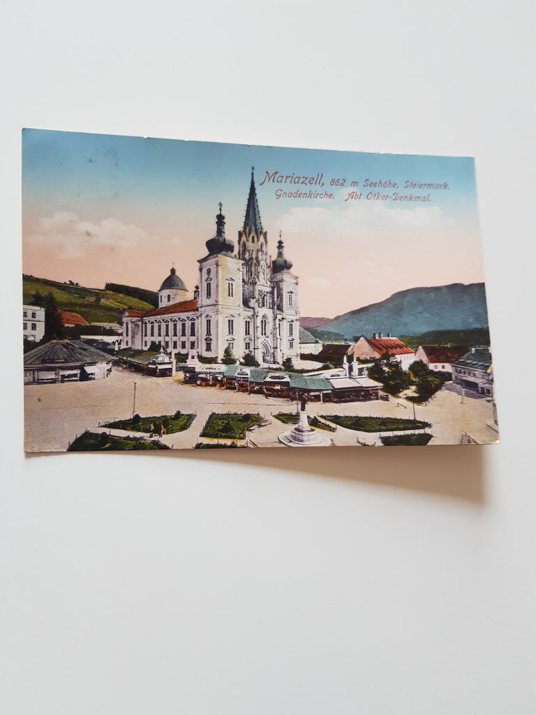 AK Mariazell. Gnadenkirche. Abt Otker-Denkmal. (1923) Gelaufen. Kleinformat. Verlag: Ledermann. Nummeriert: 17707. Zustand: gut.