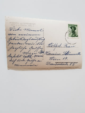 AK Mariazell. Gelaufen. Kleinformat. Verlag: Ledermann. Nummeriert: 43978. Zustand: gut, linkes unteres Eck geknickt.
