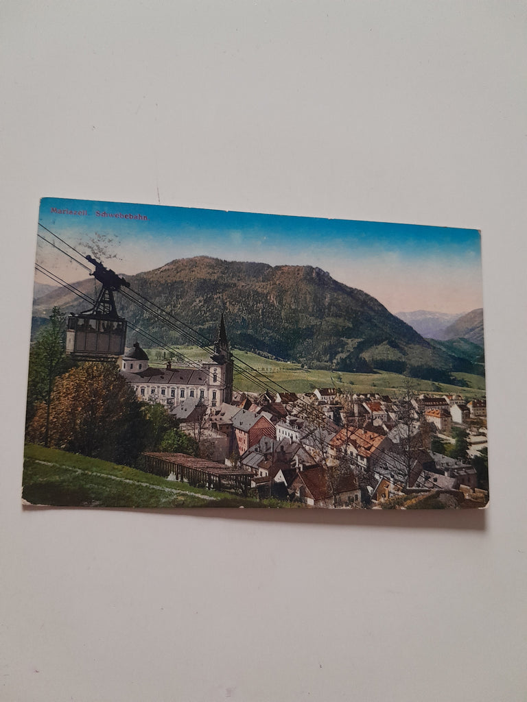 AK Mariazell. Schwebebahn. (1929) Gelaufen, aber Briefmarke wurde entfernt. Kleinformat. Verlag: Stroschneider. Nummeriert: 809. Zustand: gut.