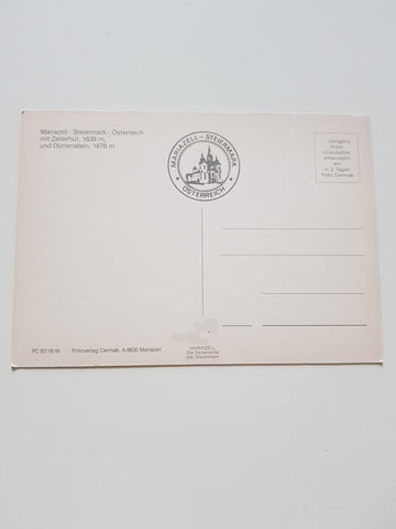 AK Mariazell. Ungelaufen. Großformat. Verlag: Cermak. Nummeriert: PC 87/18 W. Zustand: gut, linkes oberes Eck angeknickt.