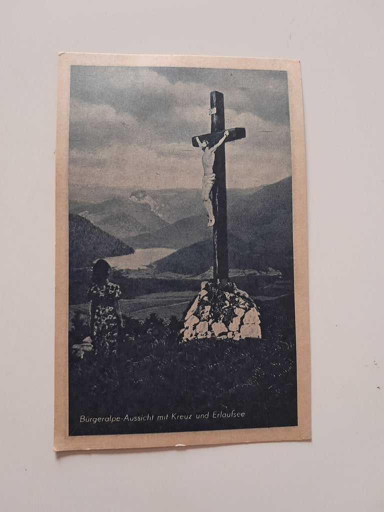 AK Bürgeralpe-Aussicht mit Kreuz und Erlaufsee. Ungelaufen. KIeinformat. Zustand: gut.