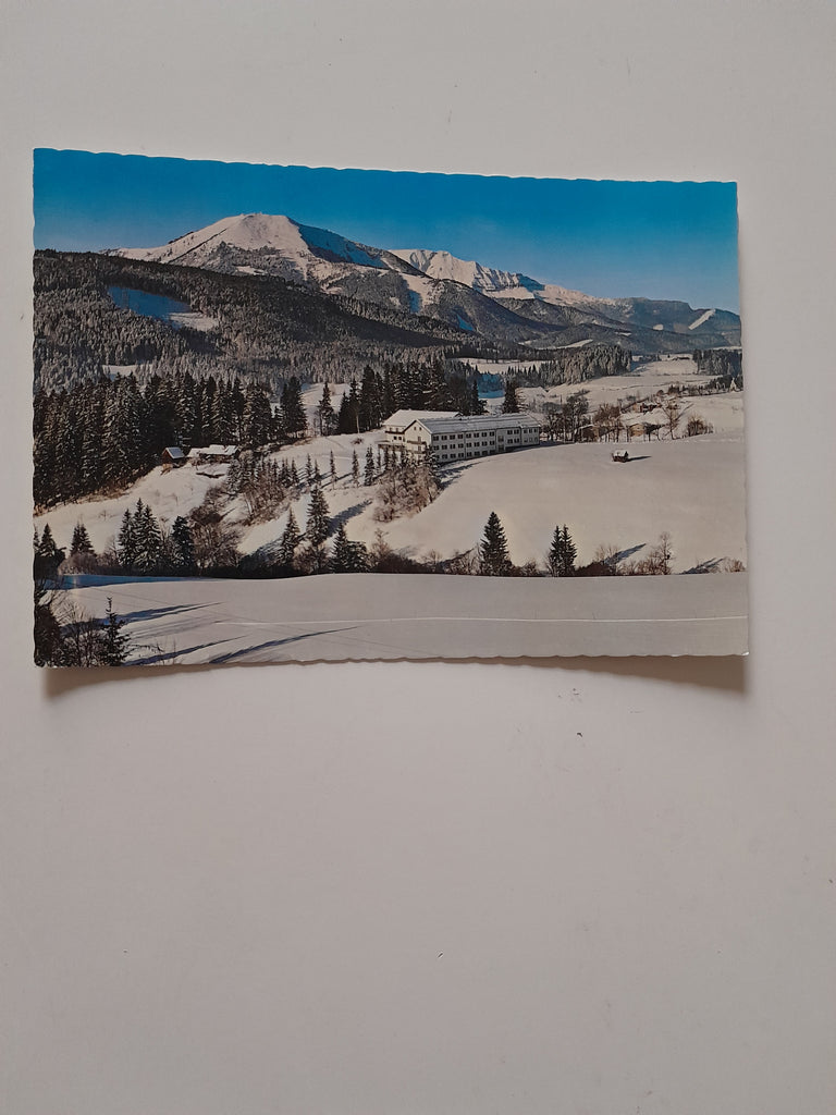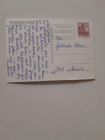 AK Bundesschullandheim Mariazell mit Gemeindealpe und Ötscher. Gelaufen. Großformat. Verlag: Kuss. Nummeriert: CN 9. Zustand: linkes unteres Eck geknickt, sonst leicht bestoßen.