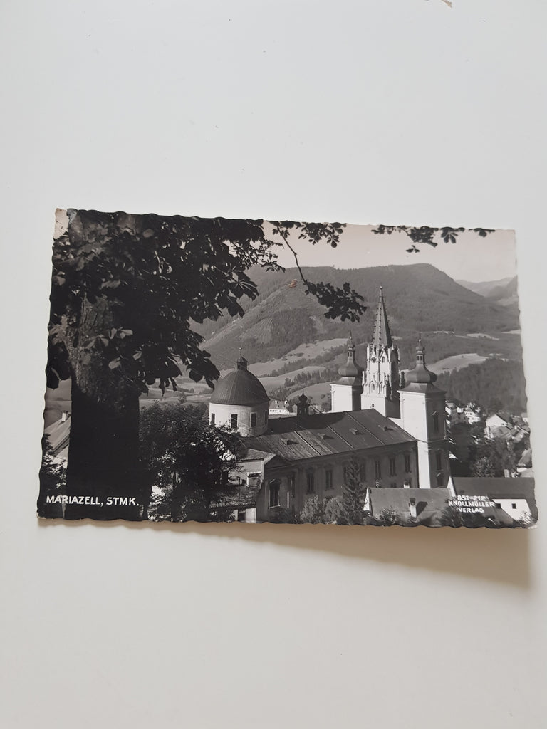 AK Mariazell. (1954) Gelaufen. Kleinformat. Verlag: Knollmüller. Nummeriert: 851-212. Zustand: linkes oberes Eck bestoßen.