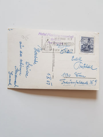 AK Marienfall bei Mariazell. (1952) Gelaufen. Kleinformat. Verlag: Radinger. Nummeriert: 3118. Zustand: linkes unteres Eck geknickt.