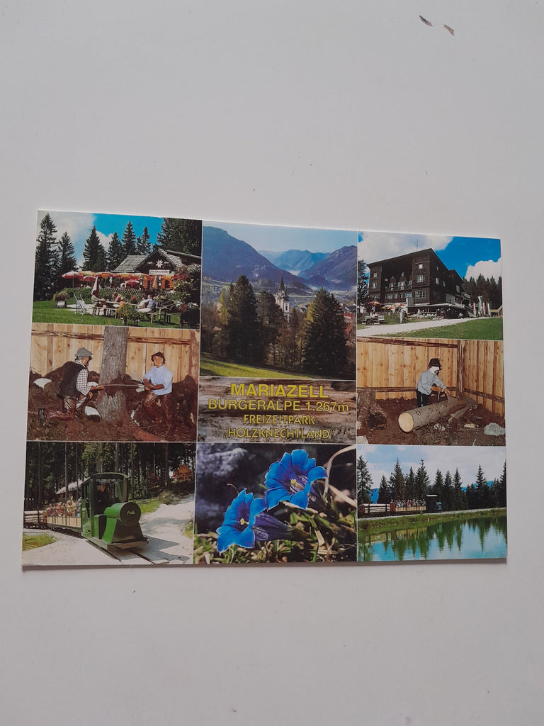 AK Mariazell. Bürgeralpe. Freizeitpark Holzknechtland. Gelaufen. Großformat. Verlag: Cermak. Nummeriert: 76. Zustand: gut.
