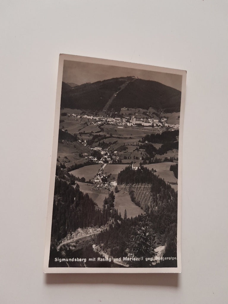 AK Sigmundsberg mit Rasing und Mariazell. (1930) Gelaufen. Kleinformat. Verlag: Ledermann. Nummeriert: 29325. Zustand: gut.