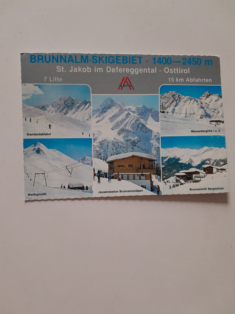 AK St. Jakob im Defereggen. Brunnalm-Skigebiet. Gelaufen. Großformat. Verlag: Mariner. Nummeriert: 40. Zustand: gut.