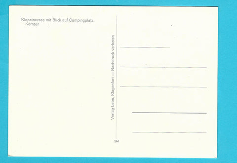 AK Klopeinersee mit Blick auf Campingplatz. Ungelaufen. Großformat. Verlag: Leon. Nummeriert: 244. Zustand: gut, rechtes oberes Eck geknickt.