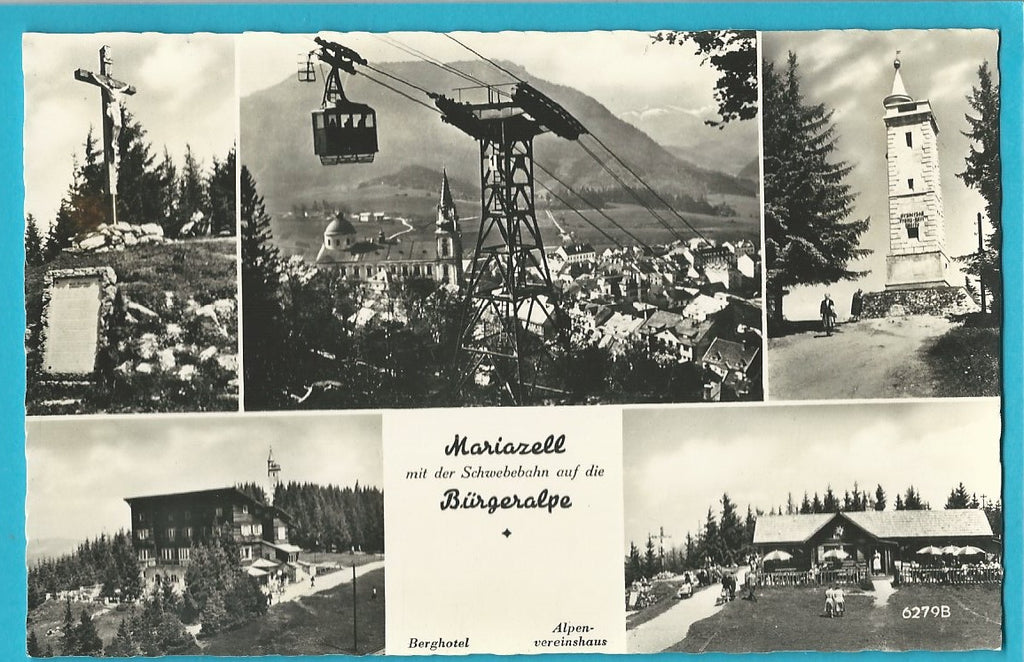 Muster-AK Mariazell mit der Schwebebahn auf die Bürgeralpe. Ungelaufen. Kleinformat. Nummeriert: 6279 B. Zustand: gut.