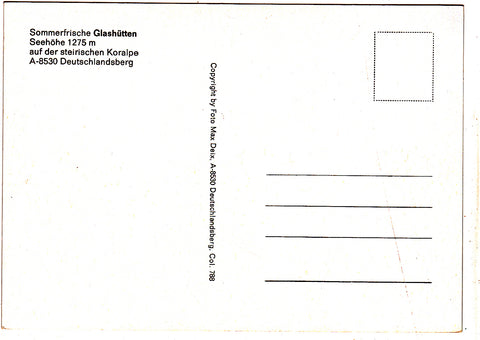 AK Glashütten auf der steirischen Koralpe. Ungelaufen. Großformat. Verlag: Deix. Col., 788. Zustand: mehrere kleine Knicke.