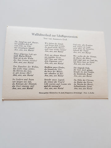 Karte. Marien-Schiffsprozession auf dem Wörthersee.