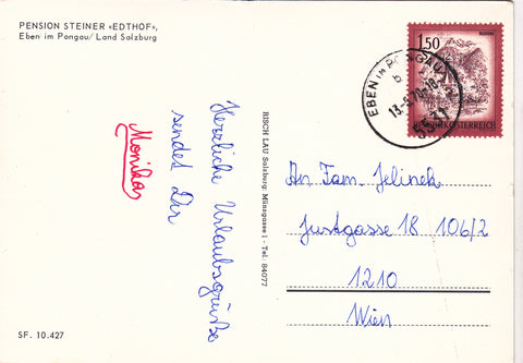 AK Eben im Pongau. Pension Steiner Edthof. Gelaufen. Großformat. Verlag: Risch-Lau. Nummeriert: SF 10427. Zustand: gut, nur leichte Randläsuren.