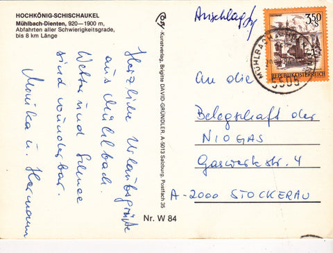 AK Hochkönig-Schischaukel. Karbachalm. Mühlbach-Dienten. Gelaufen. Großformat. Verlag: Cosy. Nummeriert: W 84. Zustand: gut.