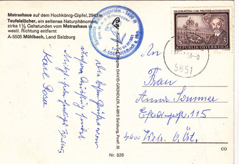 AK Matrashaus, Hochkönig. Gelaufen. Großformat. Verlag: Cosy. Nummeriert: 826. Zustand: gut, leicht fleckig.