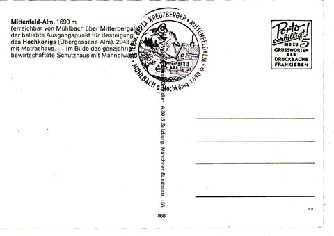 AK Mittenfeld-Alm. Mühlbach am Hochkönig. Ungelaufen. Großformat. Verlag: Cosy. Nummeriert: 868. Zustand: gut.