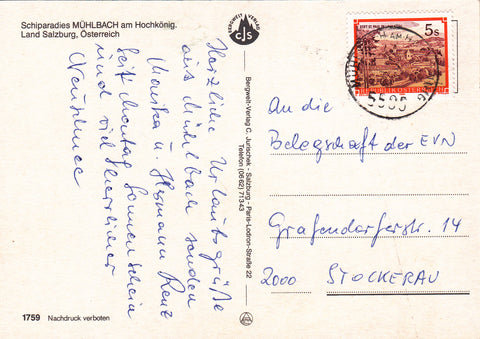 AK Mühlbach am Hochkönig. Gelaufen. Großformat. Verlag: Jurischek. Nummeriert: 1759. Zustand: gut.