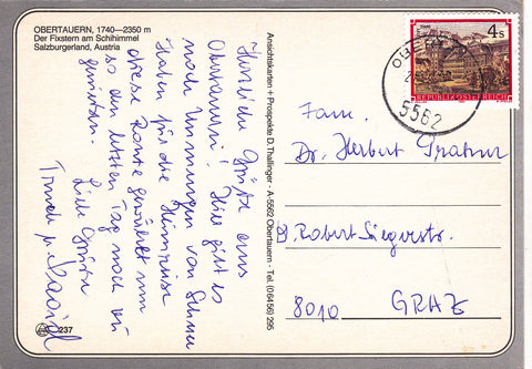 AK Obertauern. Gelaufen. Großformat. Verlag: Thallinger. Nummeriert: 237. Zustand: linkes oberes Eck angeknickt, Knick am oberen Rand beim rechten Eck, sonst O.k.