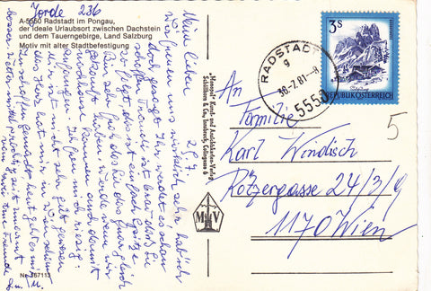 AK Radstadt im Pongau. Motiv mit alter Stadtbefestigung. Gelaufen. Großformat. Verlag: Monopol. Nummeriert: 167113. Zustand: gut, linkes unteres Eck leicht geknickt.