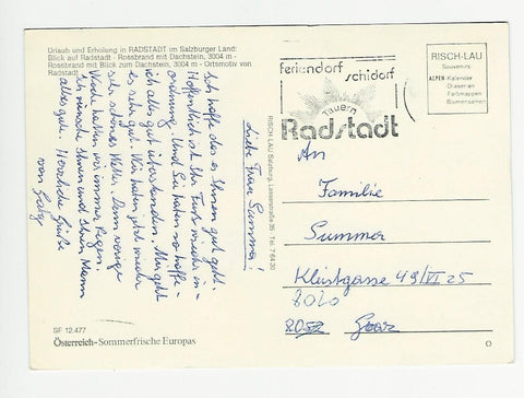 AK Radstadt-Rossbrand. Gelaufen, aber Briefmarke wurde entfernt. Großformat. Verlag: Risch-Lau. Nummeriert: SF 12477. Zustand: leichte Läsuren.