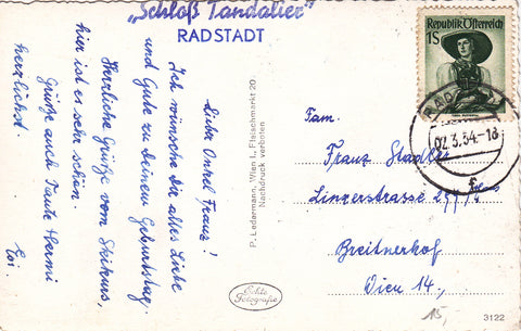 AK Radstadt. Schloß Tandalier. Gelaufen 1954. Kleinformat. Verlag: Ledermann. Zustand: gut.