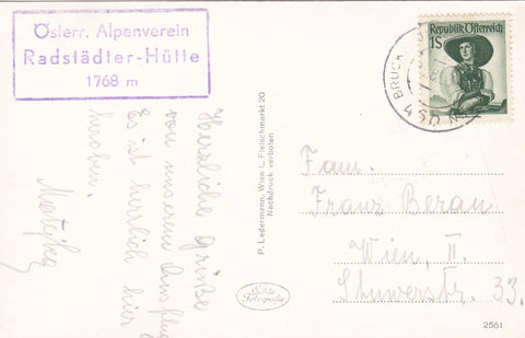 AK Radstädter Hütte am Roßbrand mit Dachstein. Gelaufen. Kleinformat. Verlag: 37034a. Zustand: gut.